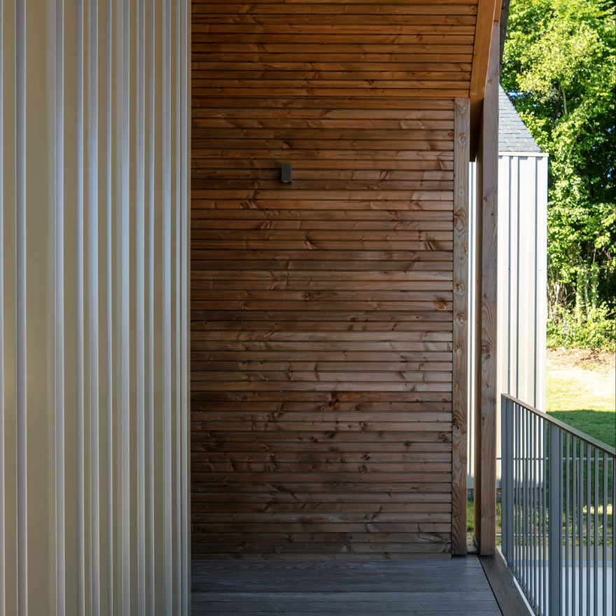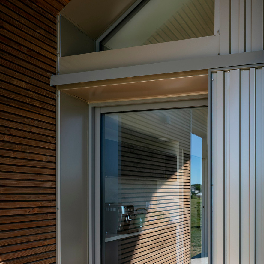 De nombreux équipements tels que des panneaux photovoltaïques et une importante réserve d’eau la rendent autonome. La simplicité des volumes est renforcée par l’exigence des détails d’assemblage des différents matériaux.