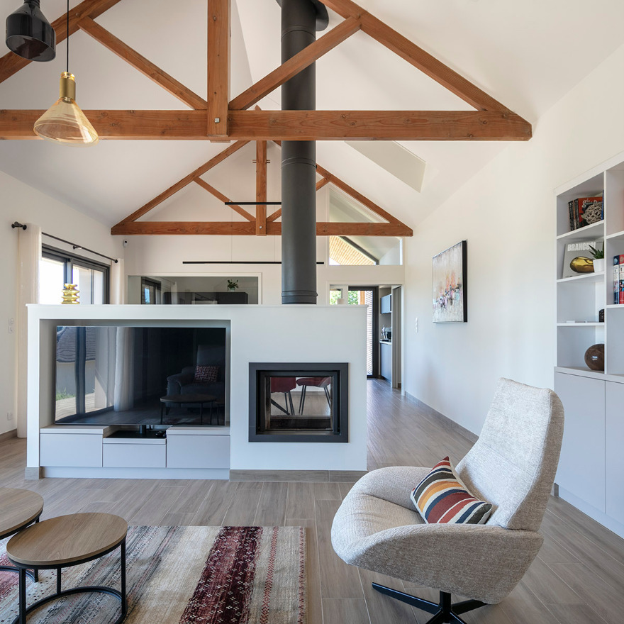 De nombreux équipements tels que des panneaux photovoltaïques et une importante réserve d’eau la rendent autonome. La simplicité des volumes est renforcée par l’exigence des détails d’assemblage des différents matériaux.